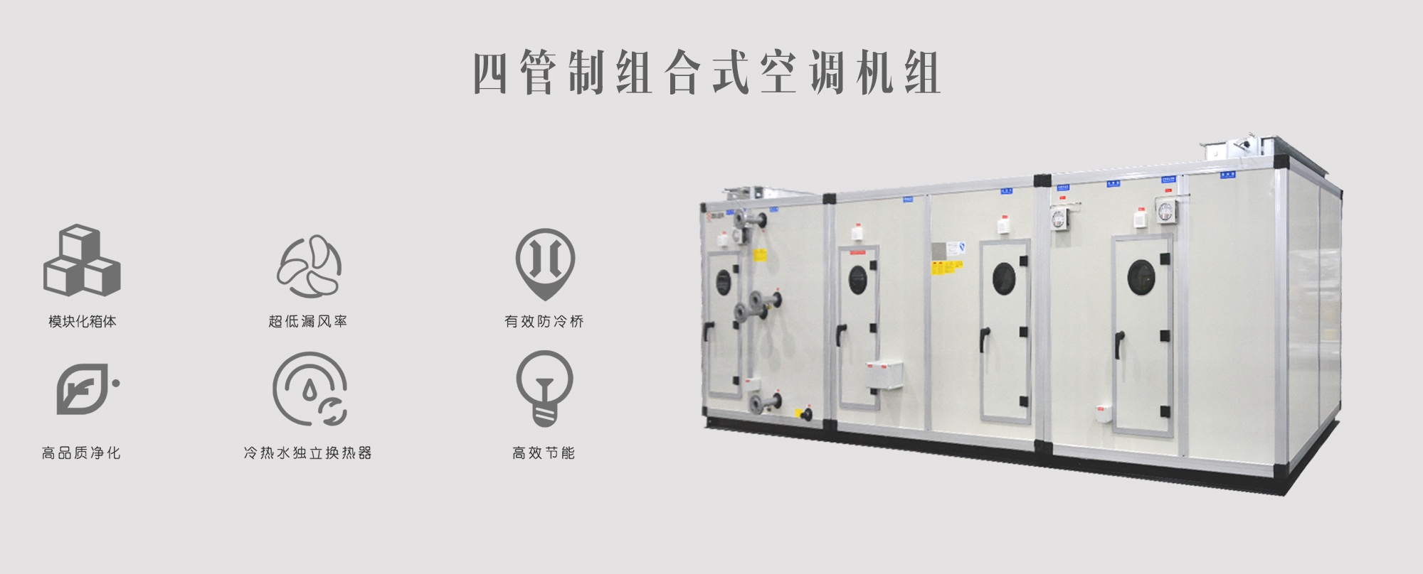 檔案館庫房應維持溫度和濕度相對穩(wěn)定,溫度日較差≤±2 ℃,濕度日較差≤±5%,需要配置恒溫恒濕型的空氣處理系統(tǒng)。傳統(tǒng)型空調一般配置熱泵型冷熱水機組+組合式空氣處理機組的方案,在組合式空氣處理機組內部配有加濕器和電加熱器,直接使用電加熱器能耗較高,不節(jié)能。思科空調推薦的解決方案為:四管制風冷熱泵機組+組合式空氣處理機組,四管制風冷熱泵機組具有單獨制冷、單獨制熱、冷熱聯(lián)供三種運行模式,配套的組合式空氣處理機組內部增加了1套熱水換熱器,取代傳統(tǒng)空調配置的電加熱系統(tǒng),充分回收冷凝廢熱,熱回收系統(tǒng)作為制冷除濕后的再熱源,機組運行更加節(jié)能環(huán)保。